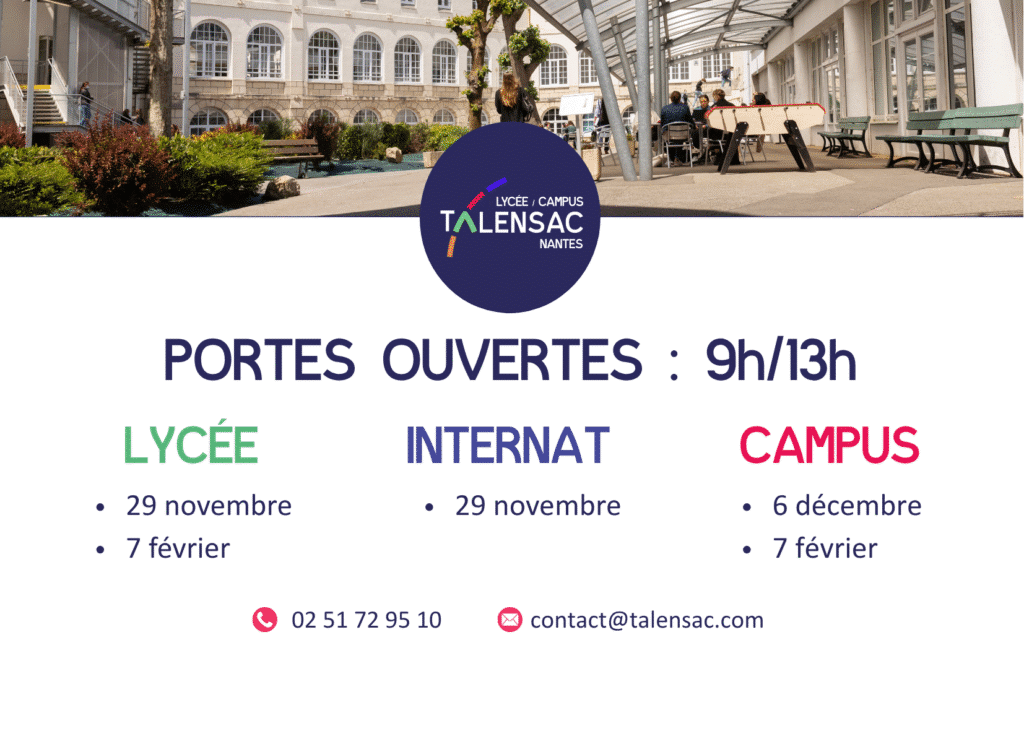 Situé au cœur de Nantes depuis 1835, le Lycée/campus Talensac accueille plus de 1100 élèves, étudiants et apprentis de la 3ème au Bac +3.