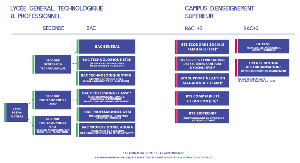 Dans les années 2015, le lycée devient pôle d’enseignement supérieur en intégrant le lycée Jeanne Bernard de St Herblain avec ses 400 étudiants.